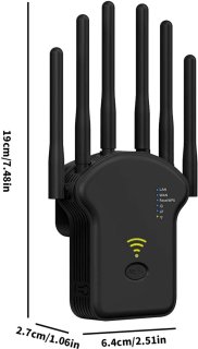 Voor apparaten die je liever bedraad aansluit is er een Ethernet-poort beschikbaar, ideaal voor smart-tv’s of gameconsoles die baat hebben bij een stabiele verbinding. De versterker heeft een slank, zwart ontwerp (afmetingen: 19 x 6,40 x 2,70 cm) en weegt 529 g — grootse prestaties zonder veel ruimte in te nemen.
