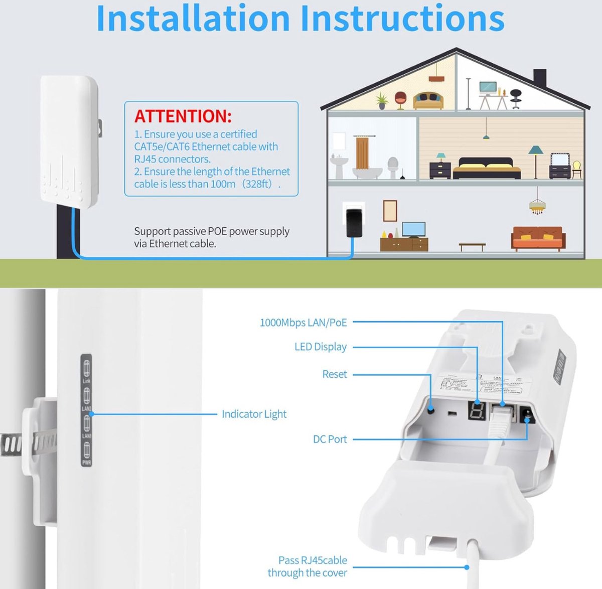 Met een indrukwekkend bereik tot wel 200 meter breidt deze Wi-Fi versterker je draadloze netwerk uit naar alle hoeken van je tuin of buitenruimte. Geniet van snelle, ongestoorde verbindingen tot wel 300 Mbps, ideaal voor het streamen van 4K-video’s, online games en het gebruik van meerdere apparaten tegelijkertijd.