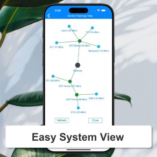 Deze Extender is geen gewone repeater. Hij breidt een Zigbee Mesh-netwerk uit dat speciaal is ontworpen voor betrouwbare, energiezuinige communicatie tussen slimme irrigatie-apparaten. In grote tuinen of op heuvelachtig terrein zorgt de Extender ervoor dat je ventielen en sensoren altijd verbonden blijven, zodat je watermanagement consistent en efficiënt blijft.