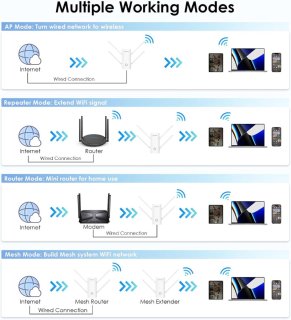 - Ondersteunde bedrijfsmodi: Repeater, Access Point (AP), Router, Mesh