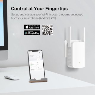 Geen technische kennis nodig: steek het apparaat in het stopcontact, druk op de WPS-knop van je router en van de repeater en je netwerk is uitgebreid binnen enkele seconden. Wil je fijnmaziger instellen? Gebruik dan de intuïtieve mobile app (iOS & Android) om apparaten te beheren en instellingen aan te passen — de app is optioneel.