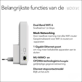 Geen gedoe met lange netwerkkabels of ingewikkelde configuraties. Plaats de repeater op een strategische plek waar het signaal nog redelijk is en laat het apparaat de rest doen. Dankzij de gecombineerde snelheid en dual‑band ondersteuning houd je meerdere apparaten tegelijk online zonder merkbare vertraging. Perfect voor thuiswerkers, gezinnen of iedereen die in meerdere kamers betrouwbare WiFi wil.