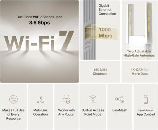 - Flexibel inzetbaar: Gebruik als repeater of als dual-band access point door een Ethernetkabel aan te sluiten — ideaal voor ruimtes zonder draadloos signaal.