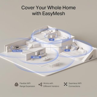 - Naadloze mesh-ervaring: EasyMesh-ondersteuning zorgt voor één groot netwerk; apparaten schakelen automatisch over naar het beste signaal zonder onderbrekingen.
